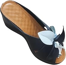 Elegant Ladies Polka Dot Slip-On Sandals,Black and White, Bow Design, Open Toe