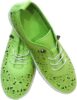 Step into summer style with these charming lime green flats featuring an intricate floral cutout design. These fashion-forward shoes combine casual comfort with feminine flair through their delicate flower patterns and breathable perforated upper. The lace-up design with white laces offers both aesthetic appeal and a secure, adjustable fit. The lightweight construction and flat sole make these perfect for all-day wear during warm weather occasions. Their versatile design pairs beautifully with sundresses, shorts, or casual outfits. The shoes feature a comfortable rounded toe and a durable outsole that provides reliable traction. The eye-catching lime green color adds a vibrant pop to any ensemble, while the detailed floral cutouts create an airy, feminine silhouette. These summer-ready flats strike the perfect balance between style and comfort, making them an ideal choice for casual outings, shopping trips, or relaxed weekend wear.