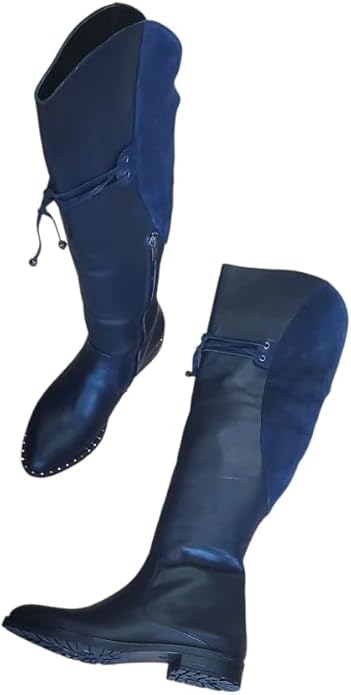 Step out in style with these elegant knee-high boots crafted from genuine leather and suede. The navy blue and burgundy combination offers a sophisticated look suitable for various occasions. These versatile boots feature a practical side zipper closure for easy wear, while the 1-inch block heel provides comfortable all-day support. The closed-toe design and water-resistant construction make these boots perfect for winter weather, while the cotton lining ensures your feet stay cozy. The lightweight construction and medium width accommodate comfortable fit, and the solid pattern maintains a timeless appeal. The 6-inch shaft circumference and knee-high length create a sleek silhouette that pairs beautifully with both casual and dressy outfits. These boots combine functionality with style, featuring a durable leather sole and quality craftsmanship. Ideal for outdoor events and everyday wear, these boots offer the perfect blend of comfort and sophistication for the modern woman.