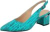 Women’s Pointed Toe Slingback Pumps, Turquoise Snake Print, Block Heel