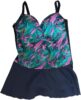 Women’s Swim Dress, Teal and Pink Floral Print Top with Navy Skirt, Built-in Bra, Sweetheart Neckline